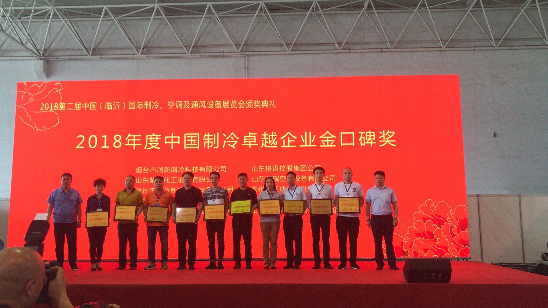 高峰論壇結(jié)束后,進行2018第二屆中國(臨沂) 國際制冷、空調(diào)及通風設(shè)備展覽會頒獎典禮。我司通過線上投票及線下產(chǎn)品實力展示贏得“2018年度中國制冷卓越企業(yè)金口碑獎”。